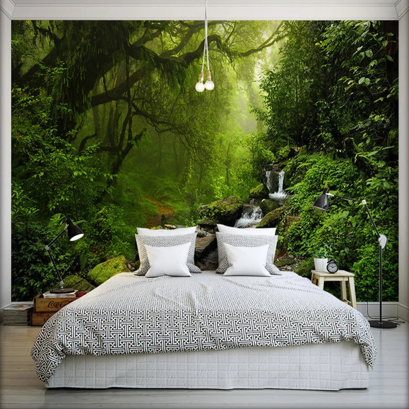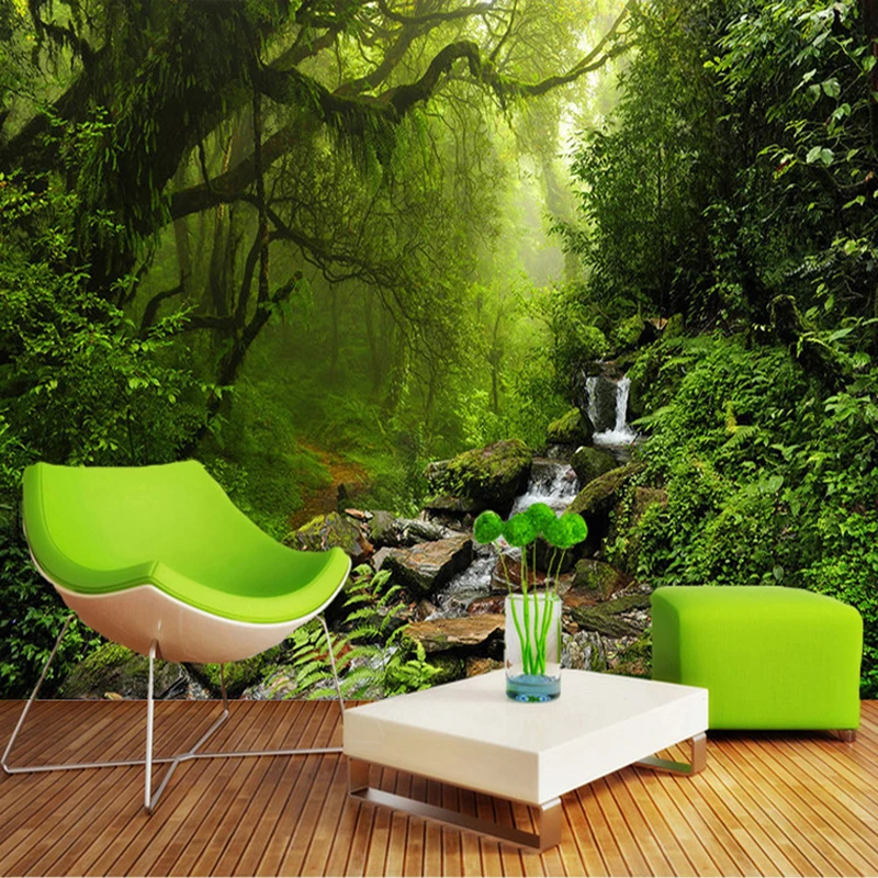Custom 3D Photo Wallpaper HD Green Landscape Waterfall Beautiful TV Background Mural Bedroom Living Room Non-woven 3D Wall Paper